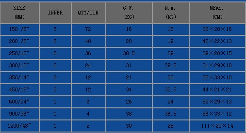 Size:6",8",10",12",14",18",24",36",48"