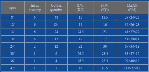 Reference size and specification: Size:8",12",14",18",24",30",36",48"