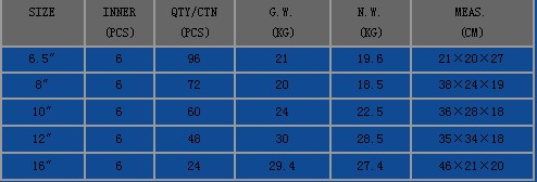 Size:6.5"£¬8"£¬10"£¬12¡°£¬16"