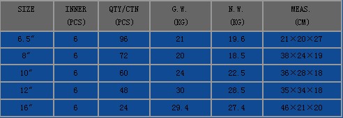 Size:6.5"£¬8"£¬10"£¬12¡°£¬16"