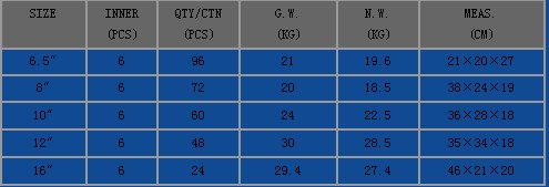 Size:6.5"£¬8"£¬10"£¬12¡°£¬16"