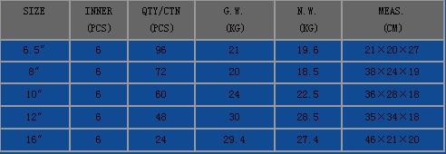 Size:6.5"£¬8"£¬10"£¬12¡°£¬16"