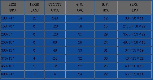 Size:4",6",8",10",12",15",18",24"