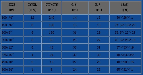 Size:4",6",8",10",12",15",18",24