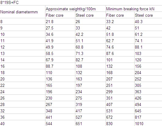 Name: 8X19S+FC wire rope Art.No.NU05802