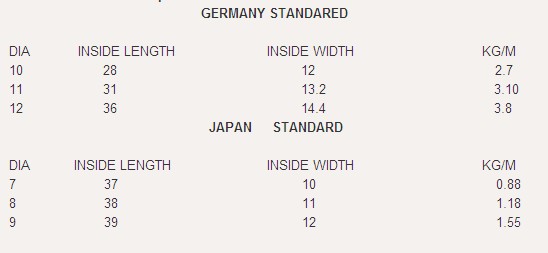 Reference sizes and specification: